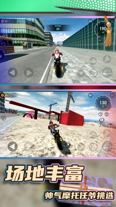 1、摩托车种类也相当丰富,逼真的游戏画面让玩家体验各种驾驶技能。