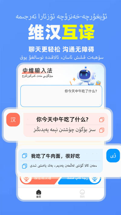 高效维汉互译引擎:凭借其强大的维汉互译功能,能够达成两种语言之间快速且精准的相互转换。无论是日常聊天、商务洽谈还是学习交流等不同场景,用户只需输入维语或汉语中的任意一种,都能即刻获取准确的翻译内容,从而切实消除语言障碍,助力不同语言背景的人们实现顺畅的沟通与交流。