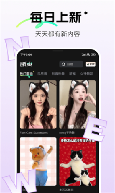 提供丰富的跳舞素材,包括女团舞、萌宠跳舞等,让你的照片和宠物都能参与到流行舞蹈中来。