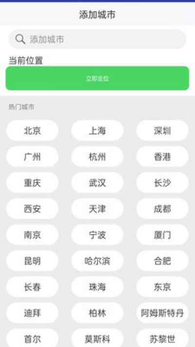 支持自动定位当前城市,也可手动添加或切换其他城市,覆盖国内外众多热门城市。