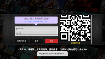 3、点击影片会显示注册登录界面,直接点击随机账号,然后点注册即可。