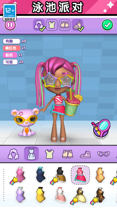 丰富的服装和配饰:游戏提供了大量的时尚服装、鞋子、包包、首饰和其他配饰,玩家可以根据不同的场合和风格进行搭配。