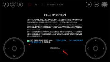 1、下载安装完成后即可启动TELLO app,并勾选统一并进入。