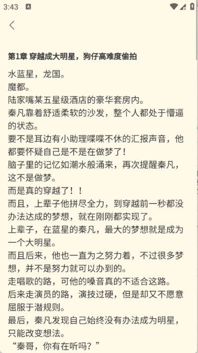4.最后可以查看到第一章节的小说故事内容进行详情了解