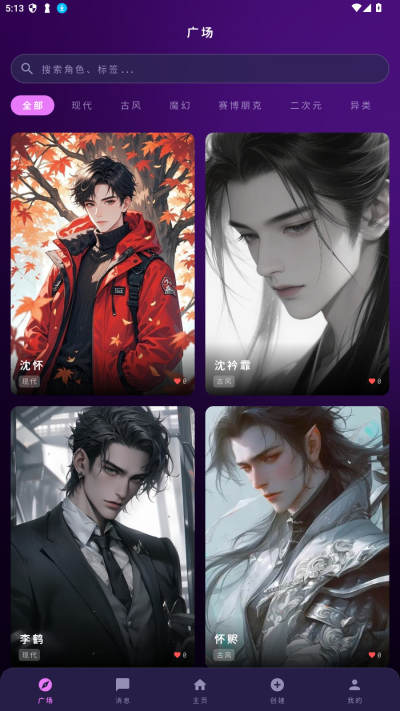 2、在广场里通过标签寻找喜欢的AI角色