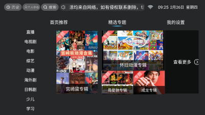 联邦影视TV电视版是一款非常好用的影视盒子软件,它有多个播放源随意切换,1080p在线急速秒播无需缓冲,每天都实时更新,新鲜看不停,热播剧集一键缓存,精彩由自己掌控!该软件带来了全面的影视资源,包括综艺和动漫,基本满足所有年龄段的用户,支持用户下载影视,并且提供快速下载通道,给用户最极致的体验。