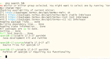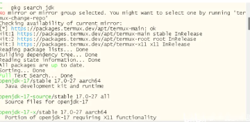 安装JDK(以命令行里出现的版本为准,下列命令输入后要再输入一次y) pkg install openjdk-17