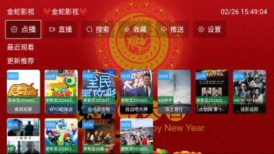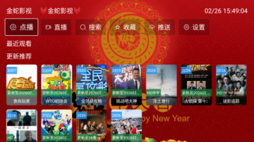 金蛇影视TV盒子最新版本是一款高清免费的影视播放神器,金蛇影视汇聚电影、剧集、综艺、动漫等全品类资源,每日实时更新热门内容,确保用户第一时间追新,软件支持关键词精准搜索,可快速定位心仪影片,并智能切换多条播放线路,自动匹配最优片源,全程无卡顿无广告,为用户打造流畅沉浸的观影体验!
