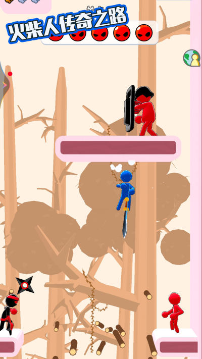 在《火柴人传奇之路》中,你将操控经典火柴人角色,利用跳跃、投掷、传送等灵活技能突袭敌人,在他们反应过来之前一击制胜。随着关卡推进,你可以解锁并装备多种强力武器——从冷兵器如武士刀、长剑,到科幻感十足的未来光剑,甚至超级英雄之锤,打造专属战斗风格。同时,通过战斗积累经验、升级技能,逐步成长为最强火柴人战士!