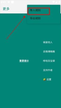 4、选择“导入规则”。