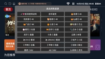 2.这里我们可以先选择首页,在首页里我们可以选择对应的影视源,大家可以根据自己的喜好进行选择
