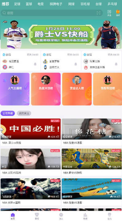 内置球迷聊天室、弹幕评论区,与全国同好实时讨论战术、吐槽裁判、庆祝绝杀,观赛更有氛围!