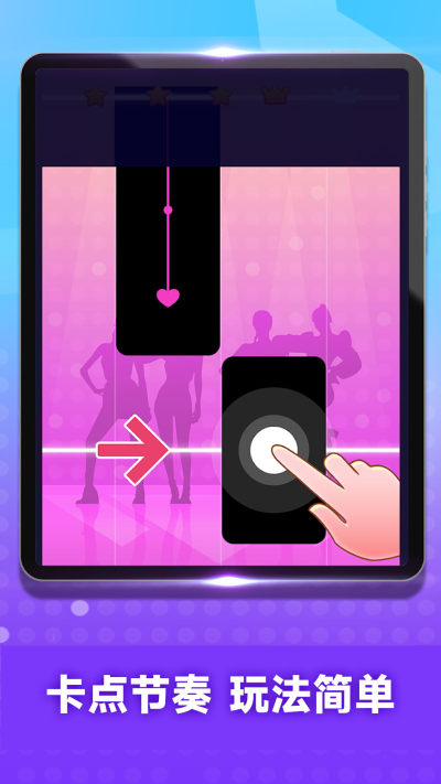 欢迎踏入闪耀的韩流音乐世界!在这款游戏中,你将化身“节奏大师”,伴随韩国顶级男团、女团的热门金曲,通过点击、滑动、长按等操作精准击打下落音符,在动感节拍中感受 K-POP 的魅力。每一场演奏都如同专属你的个人演唱会,节奏即舞台,指尖即聚光灯!