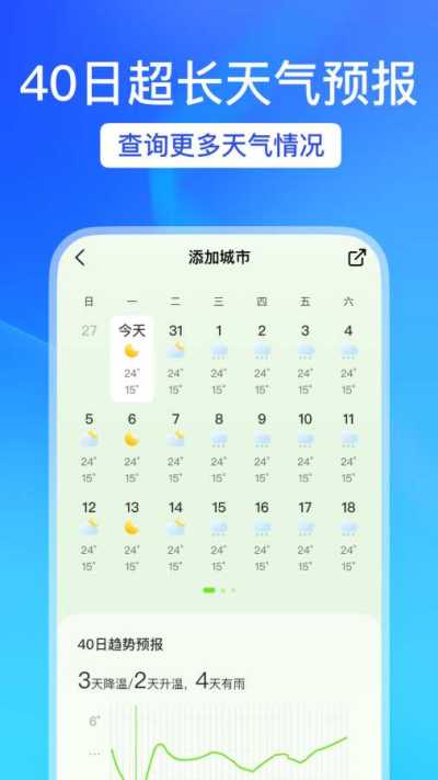 4. 查看未来天气预报:用户可以在应用中查看未来三天的天气预报和一周的天气预测。