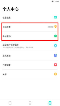 5、进入个人中心板块还可以进行运动目标设置等诸多提醒功能。