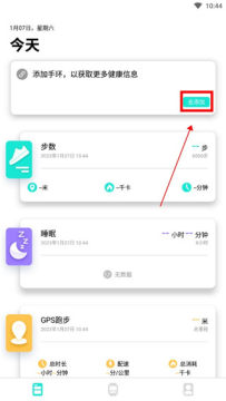 2、点击上方的【去添加】,连接手环设备。