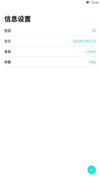 1、进入app后,输入自己的身体信息,辅助app进行数据分析。