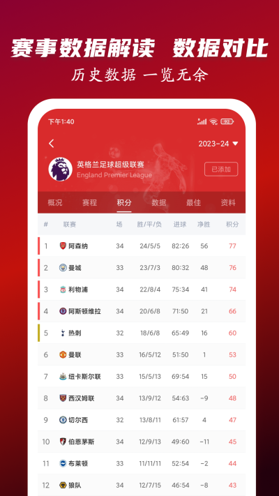 • 使用体验:界面简洁直观,功能聚焦核心需求,为用户提供便捷、清晰的看球体验,实现随时随地掌握赛事进展。