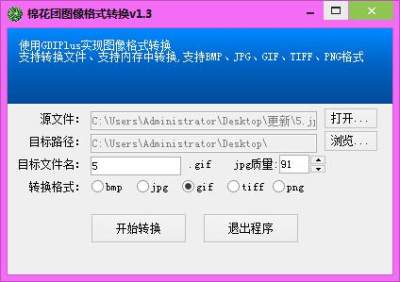 花团图像格式转换器是一款非常好用的绿色免费的图片格式转换软件,使用这个软件你可以将任何格式的图片转换成BMP、JPG、GIF、TIFF、PNG格式图片,支持调节转换图片的色彩度,支持在内存中转换,所以转换速度非常快。