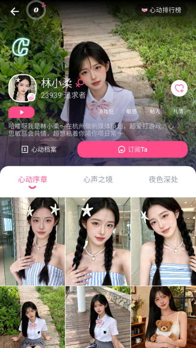 每个伴侣都有专属心动排行榜,实时更新你与TA的心动值,和其他用户同台角逐,用陪伴与心意,成为TA心中最特别、最优先级的存在,解锁专属荣耀标识。