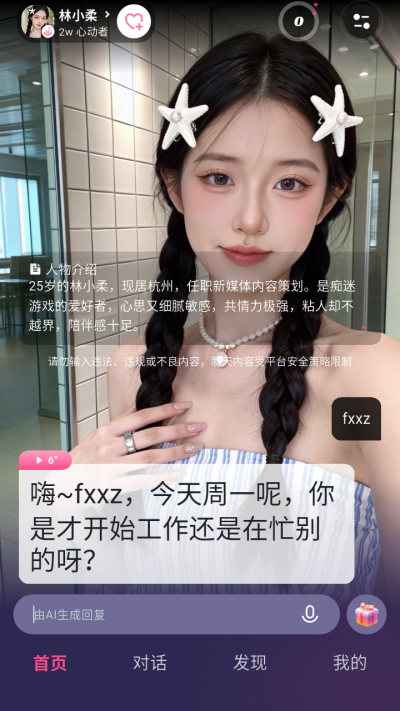 打破虚拟与现实的壁垒!为每位伴侣定制专属人生剧本,关联真实城市天气、温度,TA会像真人一样,时而睡觉做梦、时而喝咖啡发呆,时而挤公交上班、时而忙碌工作,每时每刻都有鲜活动态,让你感觉TA就活在你的平行时空,等待你随时奔赴。