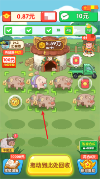 4.合成过程中,如果有卡格子的小猪,可以拖动到下方直接回收。