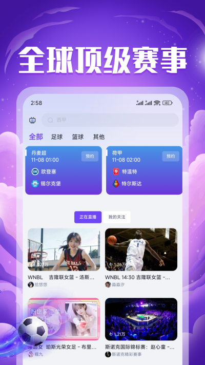 不仅限于足球篮球,还涵盖电竞(如LPL、KPL、LOL S赛)、网球、排球等热门项目,满足多元兴趣。