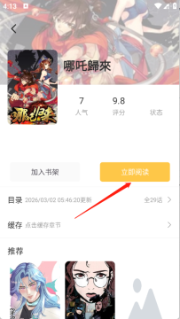4、用户点开想看的漫画进入详情页,点击立即阅读。