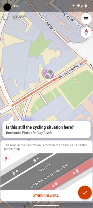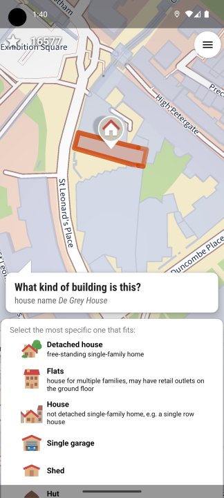 StreetComplete 是一个用于 Android 的 OpenStreetMap 数据编辑器。它可以在没有任何 OpenStreetMap 专业知识的情况下使用。它提出简单的问题,答案直接用于编辑和改进 OpenStreetMap 数据。该应用程序针对那些对 OSM 标记方案一无所知但仍然希望为 OpenStreetMap 做出贡献的用户。