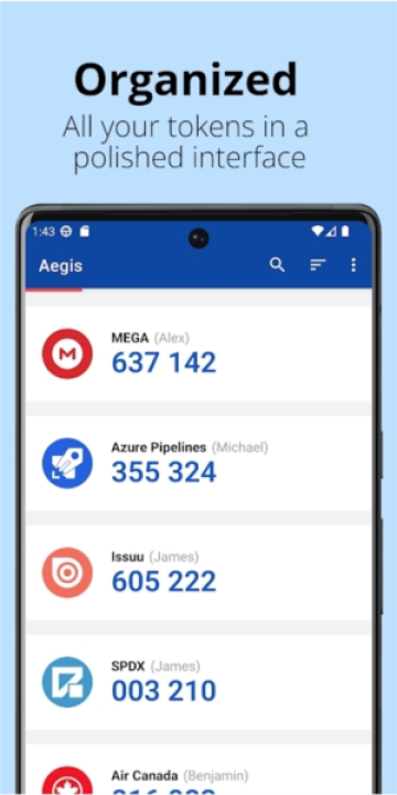 Aegis以“安全可靠、便捷实用、自主灵活”为核心定位,适配各类移动设备,操作逻辑贴合用户习惯,无需专业知识,新手可快速上手。软件核心围绕账号安全验证展开,依托AES-256加密技术筑牢安全防线,涵盖多种验证方式、数据备份与导入、验证码自动生成等功能,支持离线使用与个性化设置,无冗余干扰、无付费套路,满足用户对账号安全验证的多样化需求,兼顾安全性与便捷性。