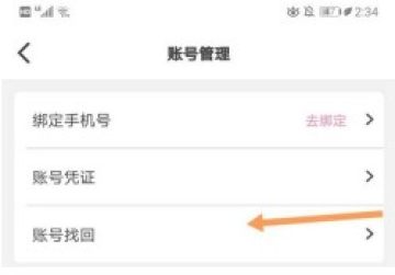 3、在此页面中选择【账号找回】,即可根据提示操作,完成账号切换。