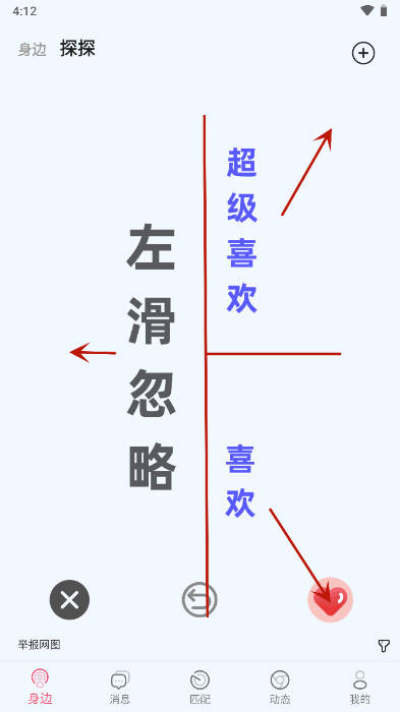 经典“Tinder式”滑动操作:右滑喜欢,左滑跳过,快速筛选心动对象,开启聊天第一步。