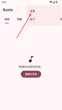 1、打开Auxio播放器,点击右上角的三点按钮,选择设置