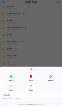 1、选择你想要分享给别人文件,选中之后页面将会出现在平时隐藏的选项,点击其中的“分享”选项即可开始分享,如下图所示: