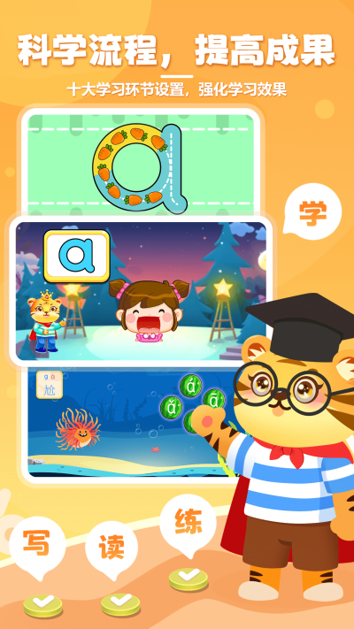 高品质的拼音字母学习手机软件,协助孩子更强的来学习拼音字母,对于许多学龄前儿童打造出。
