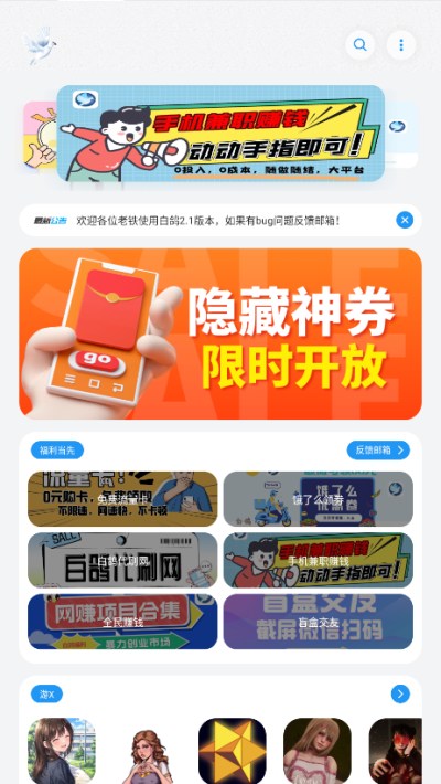 白鸽软件盒子定位为高效、全面的资源下载平台,以“免费便捷、资源丰富、更新及时”为核心原则,聚焦用户资源下载痛点。软件整合各类应用、游戏、小说、漫画等资源,支持关键词模糊搜索,简化资源查找流程;全程免费无付费门槛,所有核心下载功能均可免费使用;秉持每日更新、快速迭代的理念,确保用户第一时间获取最新资源与软件,操作简单、界面直观,适配各类有资源下载需求的用户,打造一站式资源下载体验。
