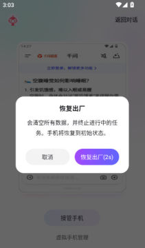 4.之后到达到“虚拟手机管理”选项菜单界面,点击“恢复出厂”按钮进入下一步