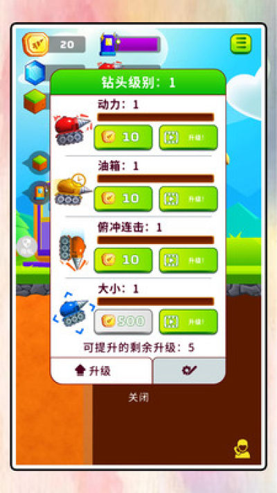 1、快速升级钻头提升移动速度,让你能在短时间内探索所有区域,快速收集所有宝物。