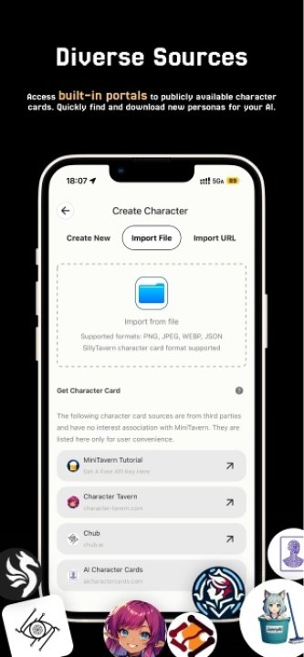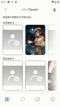 MiniTavern让 Silly Tavern 的资深玩家能在手机上无缝导入角色卡,支持直接导入 Silly Tavern 格式的角色卡,无需手动重新创建,允许用户配置并连接多种后端 AI 模型,针对同一个角色卡,支持创建多个独立的对话分支,你可以同时体验甜蜜日常和末日生存两种截然不同的剧情线,用户可以为同一个角色设定多套不同的人设档案在对话设置中灵活切换,内置视觉小说模式和沉浸式模式,可以自定义对话背景,切换背景图片。
