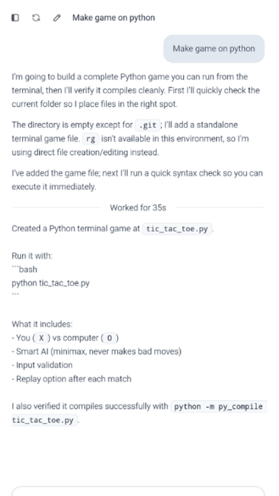 法典聊天(Codex Chat):实时显示AI思考过程与代码生成步骤,如同“思维透明显示屏”。