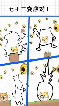 3、个性化关卡设计:每一关的蜜蜂数量、攻击角度和狗头位置都有差异,需要玩家灵活调整画线策略,避免重复感。