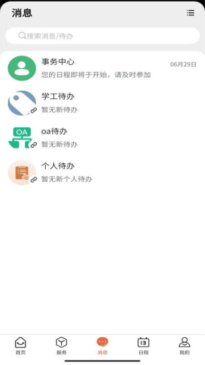 3. 功能使用:进入软件后,可在“我的待办”查看待办事项;利用信息提醒功能,防止错过重要通知;还能在平台分享班级任务、政策及申请服务等,轻松完成校内业务办理。