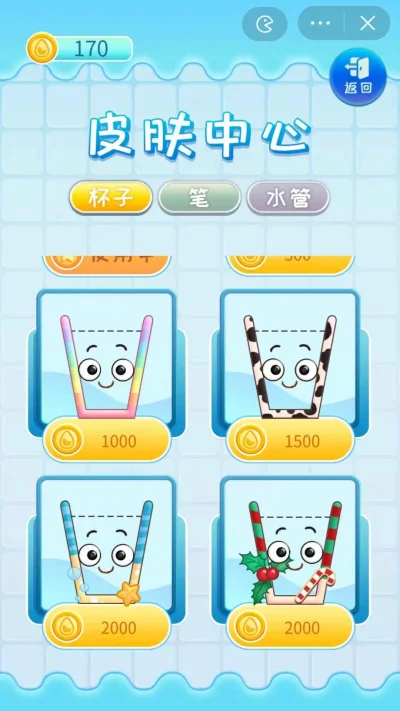 3、拥有丰富道具助力通关,还能解锁杯子、笔、水管等趣味皮肤。