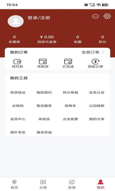 1. 安装红魔商城APP,进入后可见首页、分类、发现、我的四大板块。