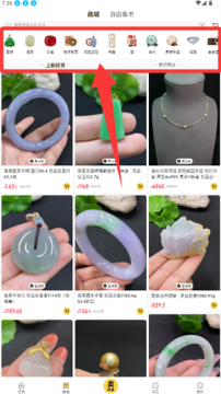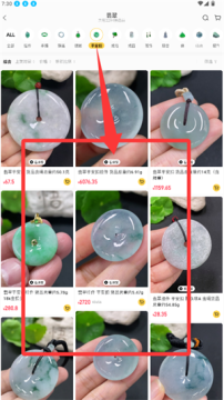2、在商城界面,点击翡翠类目即可浏览商品列表。