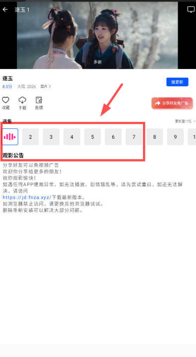 6、点开直接跳转播放,可以调整播放源和观看集数。