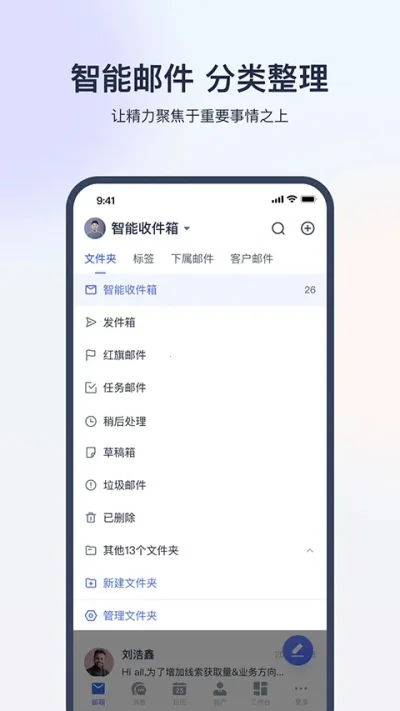 3. 邮件分类:软件能智能化对邮件内容分类,节省处理时间。接收邮件后,可快速找到重要邮件,高效办公。