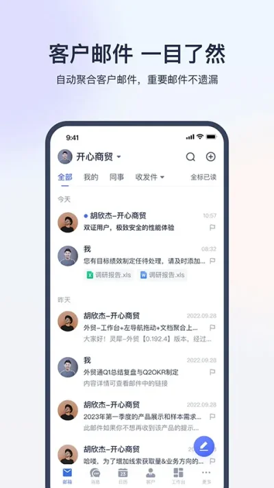 2. 可精准捕捉客户,支持邮件信息回复,外出也能随时处理工作。