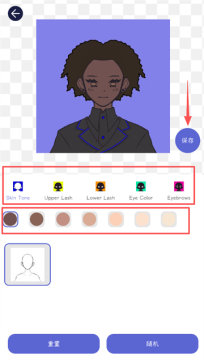 3、可以通过调整眼睛颜色、面部颜色等等功能打造出个性化的专属作品,最后点击保存