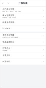 3、然后再选择开具发票的类型,如出行服务开票、平台消费开票、特惠充值开票等。